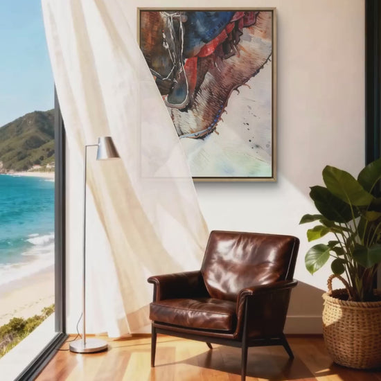 Stunning horse portrait canvas print perfect for equestrian lovers. Rustic wall art featuring The Artist's Muse design. Premium quality, ready to hang. Ideal gift for horse enthusiasts.